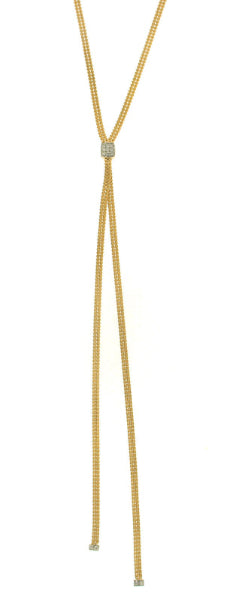 18kt yellow gold Lariat necklace with square diamond pavé stations. The necklace can be worn shorter or longer thanks to the adjuster; Length: 43 + 7 cm.